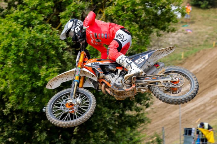Maxime Desprey, leader du championnat MX1, creuse l’écart et compte désormais 11 points d’avance sur Potisek (Yamaha Drag’on Tek) et 29 sur Soubeyras (Husqvarna 2B Up by Moraco). Rapidement troisième au départ de la première manche, il ne lui a fallu qu’un peu moins de deux tours pour se défaire de Potisek puis de Zachary Pichon (Honda RJ). Il a ensuite géré toute la manche, gardant Potisek à bonne distance sans vraiment se mettre à l’abri.