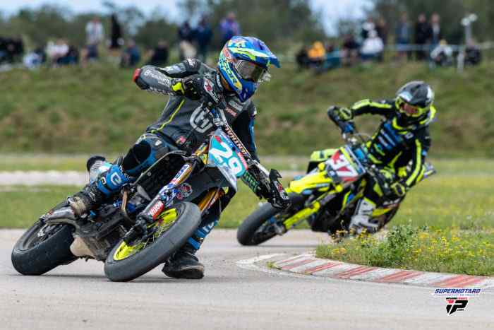 Le drapeau à damier s’est abattu sur la cinquième épreuve du Championnat de France Supermotard insane-parts.com dans les Vosges. 195 pilotes étaient alignés sur le circuit de Mirecourt-Juvaincourt en 6 catégories : Prestige S1, S2, Challenger, S3, S4 85cc et S4 65cc. La météo menaçante a été, encore une fois, plutôt clémente, et n’a quasiment pas perturbé le déroulement des séances. Le Moto-Club de Lunéville et le circuit de Mirecourt-Juvaincourt ont accompli un travail remarquable pour offrir aux pilotes et aux spectateurs une très belle épreuve.