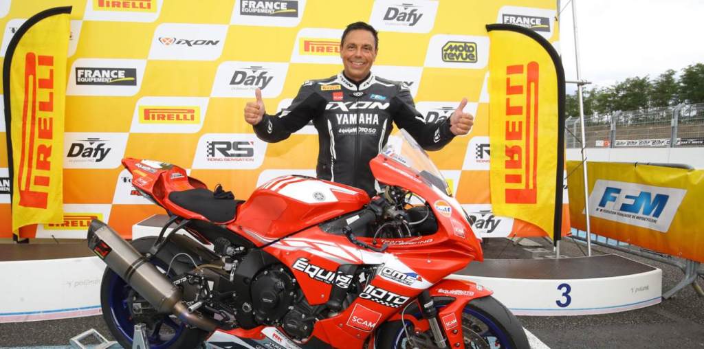 C’est sous la pluie que le départ de la catégorie reine a lieu avec un premier tour en faveur de Maxime GUCCIARDI (Yamaha) qui s’installe en position de leader. Toutefois, le local, Régis STOLTZ (Honda) prend l’avantage dans le tour suivant tandis que Maxime GUCCIARDI redescend dans le classement.