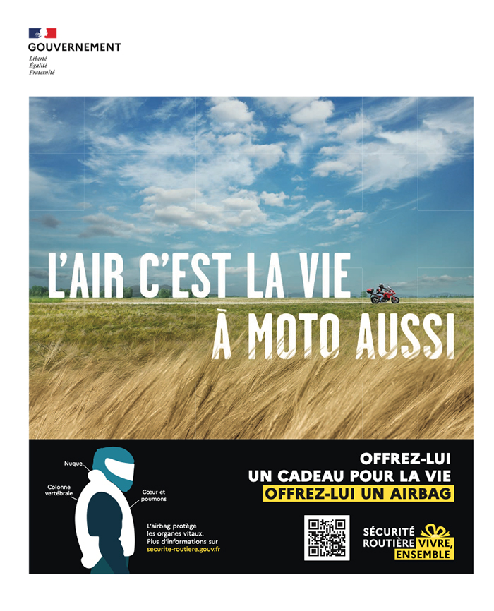 À l’approche des fêtes de fin d’année, la Sécurité routière invite, à travers une campagne presse, les proches des usagers de motos et scooters à leur offrir un cadeau qui sauve : un gilet airbag.