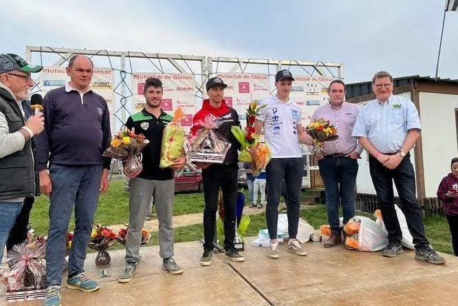 Quadruple vainqueur des dernières éditions du National de Glenac, Charles Lefrançois a confirmé sa domination sur ce circuit. Sur sa 450 Honda, Charles a signé le 4e temps des chronos en toute fin de séance. Clermont a quant à lui pris la première pôle de la saison pour une demi-seconde sur Pierre Moine et Hugo Roussaly. Lors de la première manche, le public a assisté à un beau combat aux avants-postes entre Julien Bonnaudin et Hugo Roussaly. Les deux hommes se sont échangés à plusieurs reprises la deuxième place pas très loin derrière Charles Lefrançais. Ce dernier a réalisé le premier tour en tête et n’a plus jamais quitté cette position jusqu’au drapeau à damier. C’est finalement Roussaly qui termine deuxième devant Jason Clermont. Le pilote Kawasaki a connu un départ catastrophique puis, est remonté très loin à la troisième. Il devance finalement Bonnaudin et Antoine Coste.