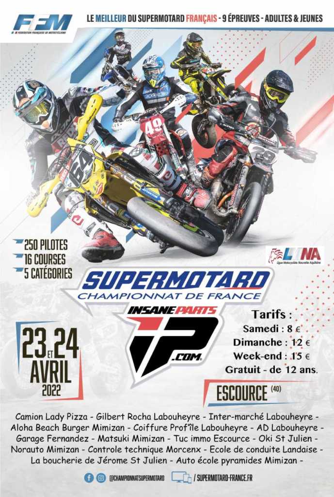 La prochaine escale du Championnat de France supermotard se déroulera le 23 et 24 avril à Escource dans les Landes. Après deux années qui ont vu l’annulation de cette épreuve pour des raisons sanitaires, celle-ci revient.
