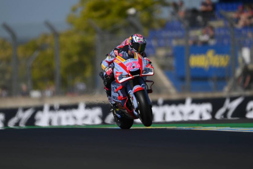 Dans une deuxième séance qui a vu de nombreux pilotes aller à terre (Mir, Bezzecchi, Marini…), Enea Bastianini a réussi à tenir sur ses roues pour aller cueillir la première place des essais 2 du Grand Prix de France, ce vendredi après-midi au Mans. Le pilote italien de Gresini n’était pas dans son assiette durant la matinée (12e), mais il a fini en boulet de canon pour boucler un tour en 1’31 »148.