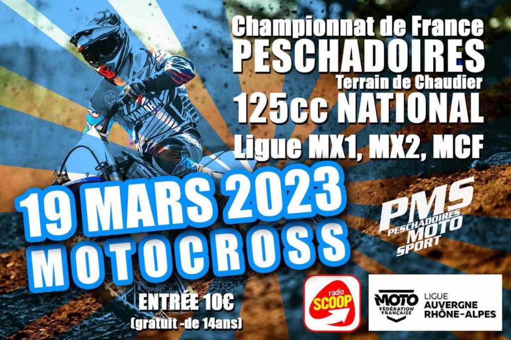 L’ouverture du Championnat de France Motocross National 125 2023 se fera à Peschadoires sur le terrain de Chaudier, dont la piste est longue de 1 450 mètres. Au programme du week-end, bien entendu le 125 National avec près de 70 concurrents, mais aussi le Championnat de Ligue AuRa MX1, MX2 et MCF.