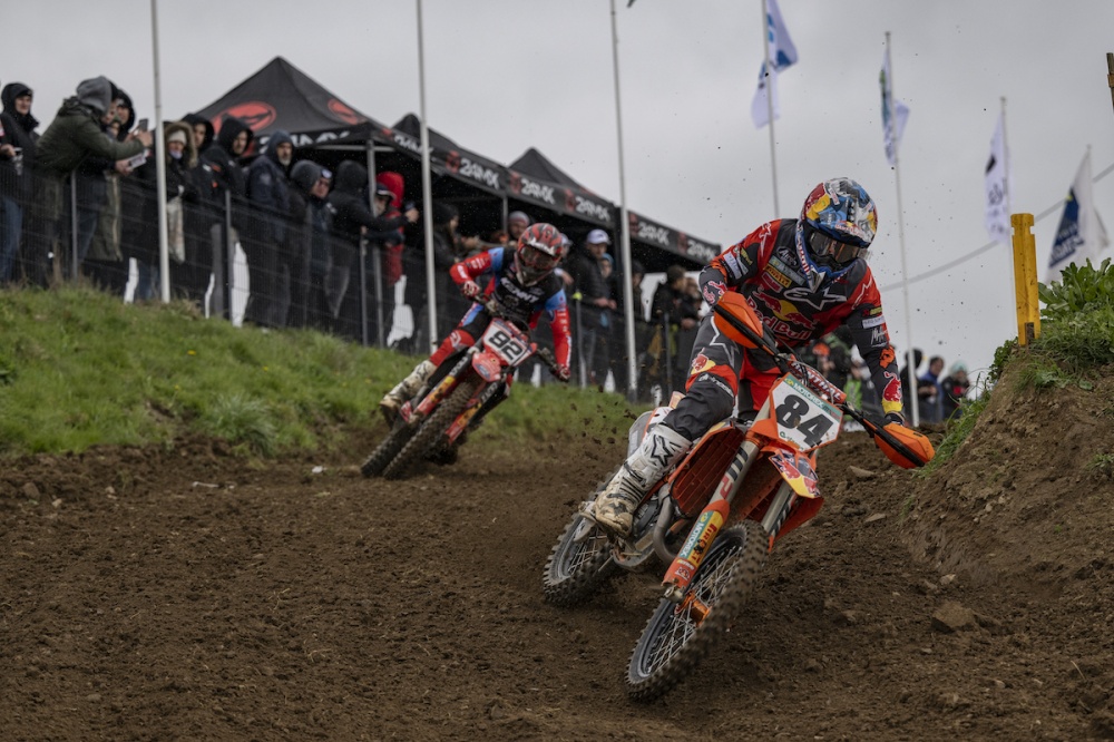 En seconde manche, Jimmy Clochet s’élance de nouveau en tête avec Rubini, Herlings, Potisek, Aranda et Boisramé juste derrière. Second en première manche, Guillod chute, repart loin et entame son come-back. Devant, Herlings prend les commandes alors que Mathys Boisramé trouve l’ouverture sur Rubini pour la seconde place. Dans les premières minutes, Potisek s’accroche avec Clochet en tentant de le dépasser. Une nouvelle fois solide, Xavier Boog est à la lutte pour le top cinq.