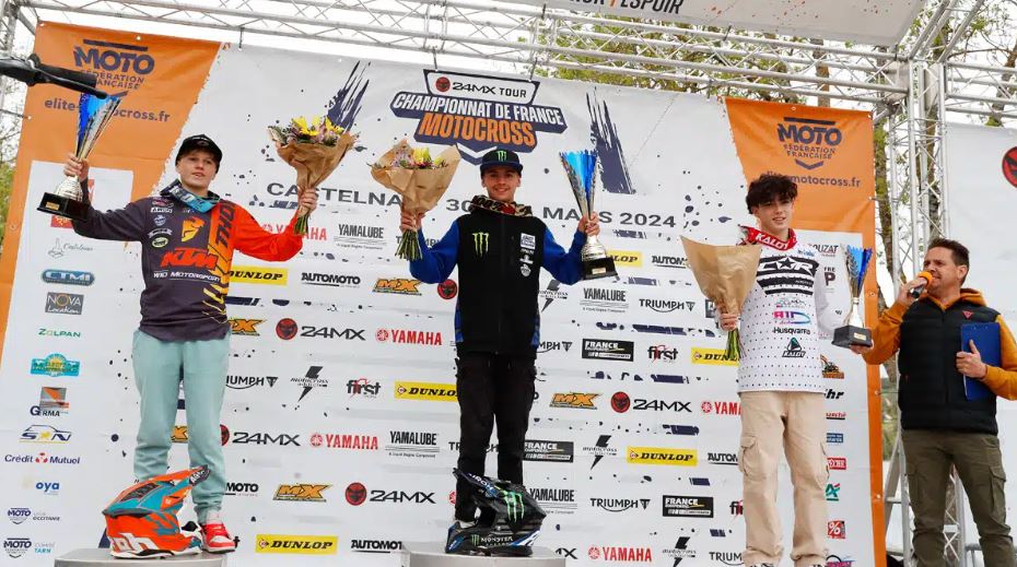 Déjà très rapide à Basly, Mano Faure avait raté le doublé en partant à la faute en première manche alors qu’il menait la danse. Pas d’erreur ce weekend, ou deux holeshots l’ont aidé si besoin était à survoler ses adversaires. La pôle aux essais, les deux manches dans la poche, Mano est l’homme à battre. Malheureux à Basly ou une casse l’avait stoppé en première manche, Liam Bruneau (2/2) signe son premier podium chez les juniors qu’il a rejoint cet hiver ; la dernière marche du podium revient à Yannis Lopez (3/3) auteur de grosses remontées après des départs très moyens.