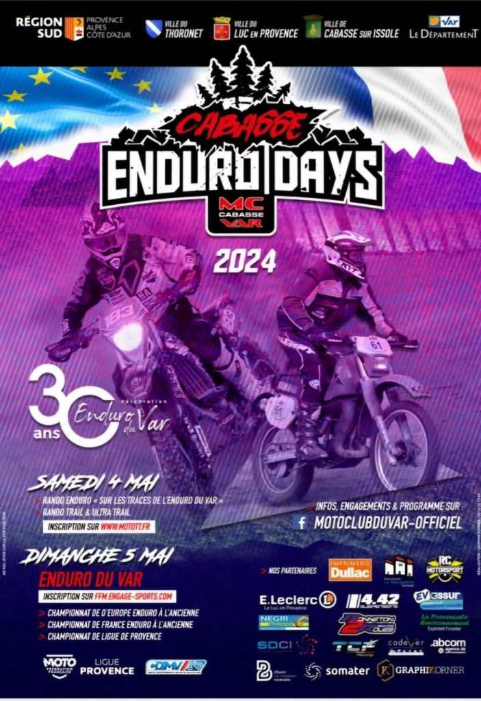 Le Moto-Club du Var organise en collaboration avec la FFM et FIM Europe la première manche du Championnat d’Europe Enduro Vintage 2024 à Cabasse située dans le Département du Var en Région Provence-Alpes-Côte d’Azur entre Brignole et Le Luc.