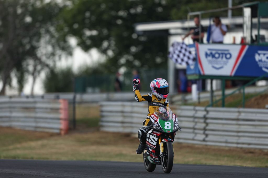 Dans la catégorie Moto 5, le duel attendu n’aura pas eu lieu. Maho ROBIC (Erdog DMT Racing – Pirelli) passe la ligne en 5e position et l’emporte dans sa catégorie, après avoir imposé un rythme que Fabio CORREIA (Castaing Racing Team – Pirelli) n’a pas pu suivre. Malheureusement, CORREIA part à la faute dans le 8e tour et ne montera donc pas sur le podium.
