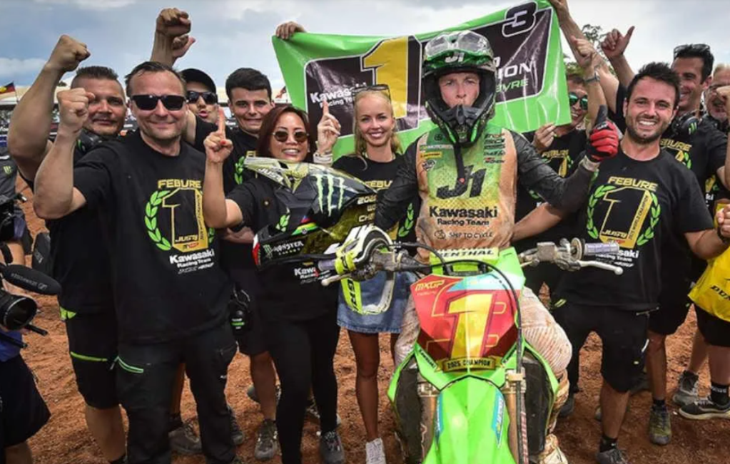 Dans la première manche MXGP, Lucas Coenen a réalisé un départ canon, décrochant le 13e Fox Holeshot de sa saison. Il a ensuite mené la course de bout en bout pour s’imposer, s’assurant ainsi la deuxième place du championnat. Il a devancé Jeffrey Herlings et Tim Gajser. Mais tous les regards étaient tournés vers Romain Febvre, qui a géré sa course avec sang-froid, terminant quatrième et s’offrant un deuxième titre mondial, 10 ans après son premier sacre de 2015. Une consécration aussi bien pour lui que pour l’écurie Kawasaki Racing Team MXGP, qui n’avait pas remporté de titre en catégorie reine depuis Sébastien Tortelli en 1998.