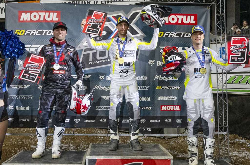 Les flash crépitants et les projecteurs braqués sur le podium final du championnat SX2 ne ramenaient pas le sourire à Jules Pietre – Yamaha TMX pourtant brillant troisième de cette saison mais sérieusement touché en finale au poignet après une chute spectaculaire.