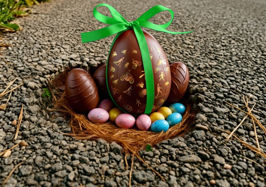 L’une des actions les plus emblématiques reste sans conteste l’Opération Oeufs de Pâques. Chaque année, avec beaucoup d’humour et d’autodérision, les motards investissent les routes pour « garnir » les nids-de-poule, fissures et autres ornières d’œufs de Pâques.