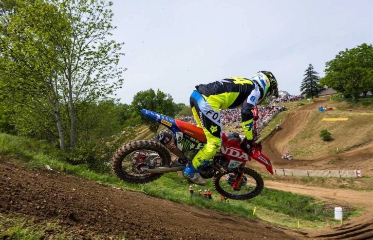 Guest-star du WE, Jeffrey Herlings n’a logiquement pas tremblé en première manche. L’officiel HRC a pris la tête d’entrée et s’est envolé à partir de la mi-course après une belle résistance de Maxime Desprey. Auteur d’un début de course incroyable en restant à quelques mètres de la roue arrière du quintuple champion du monde, le pilote Yamaha GSM Dafy Michelin termine finalement à 35 secondes.