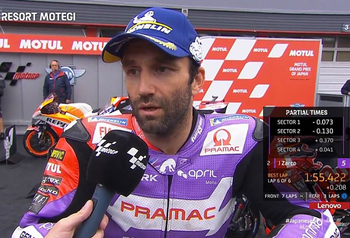 A peine descendu de sa Ducati GP22 du team Pramac Racing après avoir obtenu la 2e position sur la grille de départ du Grand Prix du Japon MotoGP sur le … Continuer la lecture de Johann Zarco signe une belle performance
