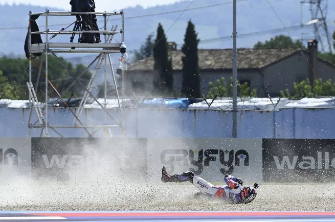 Johann Zarco a été victime d’une chute en EL2, qu’il attribue aux mouvements conséquents de sa Desmosedici sur un tracé de Misano très bosselé, ce qui l’empêche pour l’heure d’être … Continuer la lecture de Johann Zarco à eu chaud aux fesses !